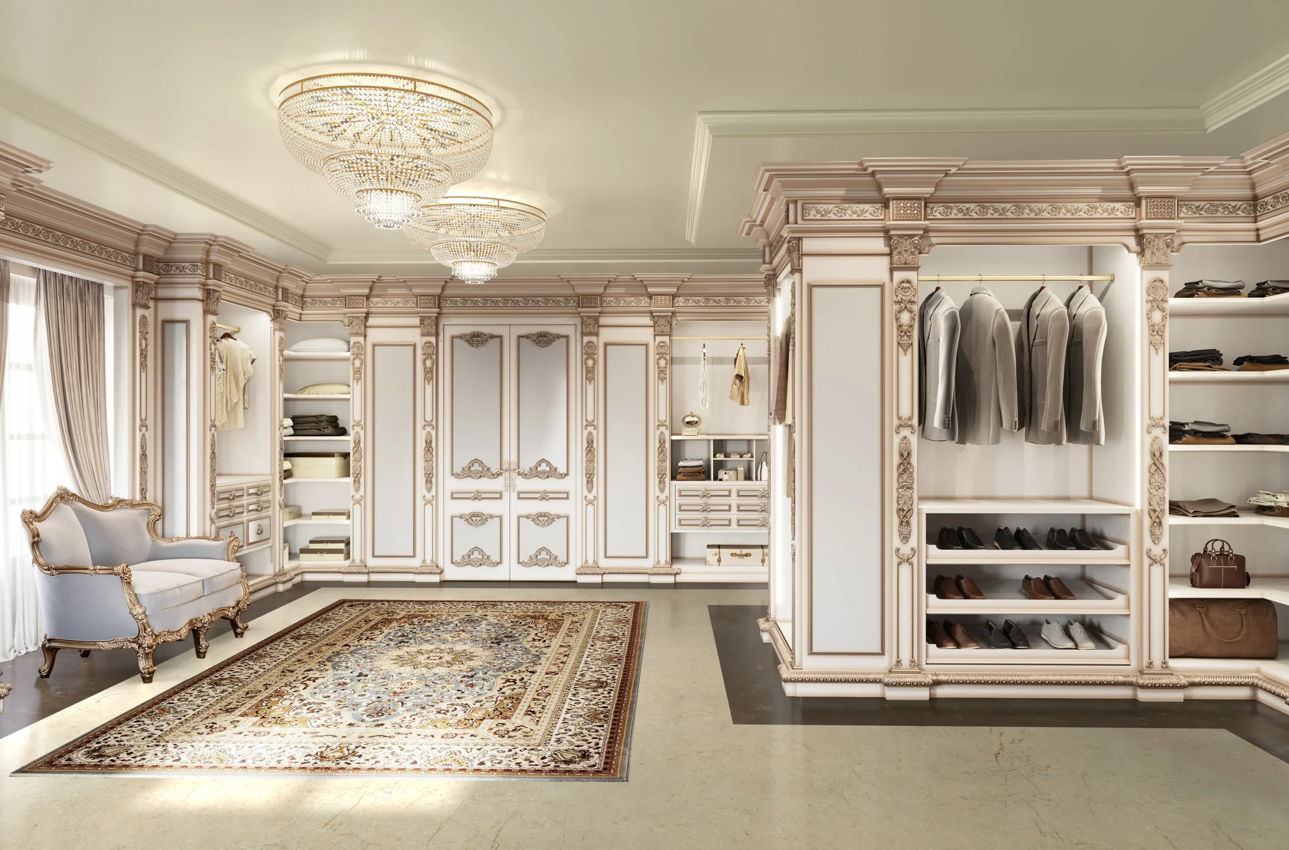 Carved forms, gilded details, noble fabrics, and intricate woodworking — every line here is carefully considered. Classic design is built on symmetry, balance, and architectural logic. Wall panels, cornices, and moldings create rhythm. Furniture becomes an art object: expressive, sculptural, and executed with impeccable attention to detail.
